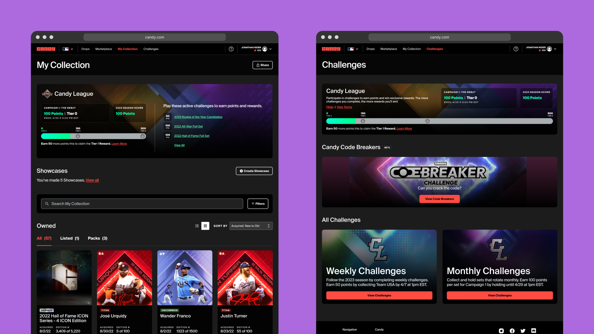 Candy Challenges are timed activities that allow users to gamify their MLB ICON collection and earn exclusive rewards. My designs would launch this long awaited feature for Candy’s passionate customers.